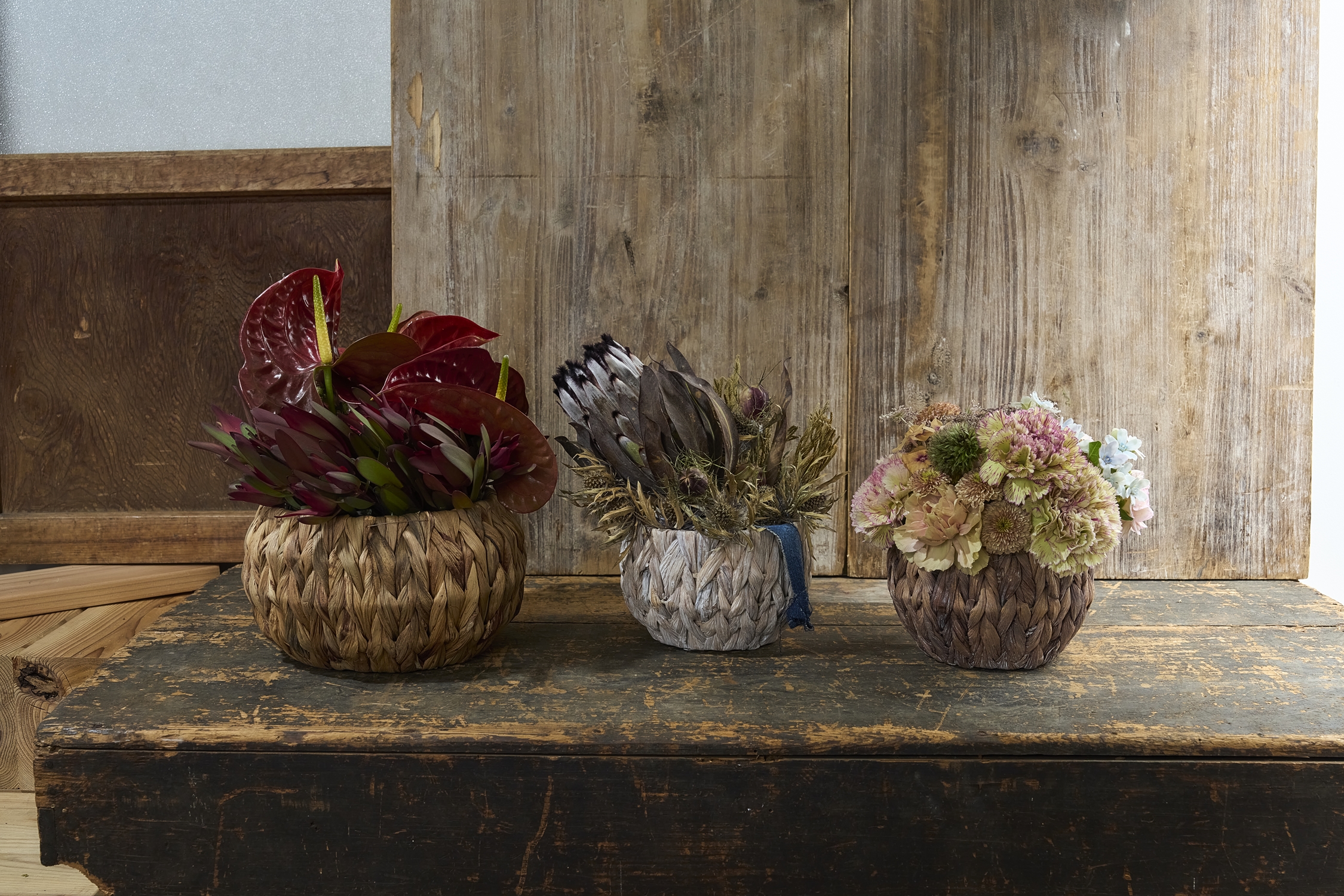 リニューアル ホグラバスケット(ワイヤー無し) アミアミバスケット ホグラバスケットはコチラ こんもり編み込みがポイントです。ライナー付き3号サイズ新入荷です。大きいものは寄せ鉢もおススメアレンジ (47)ナチュラルなアレンジに。3.5号鉢カバー4号鉢カバー5号鉢カバー6号鉢カバー ホグラバスケット ゆがみの味わいになるバスケットバングラデッシュ生産者の手仕事です。鉢カバーに・3号のポインセチアと。 オンラインショップへ